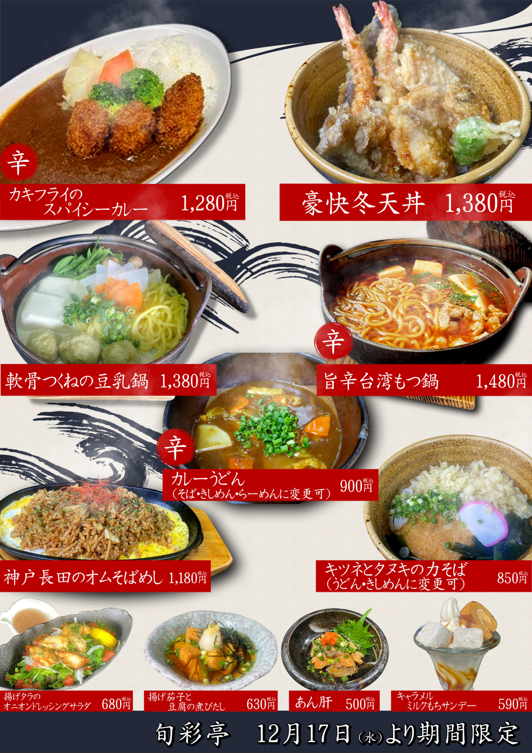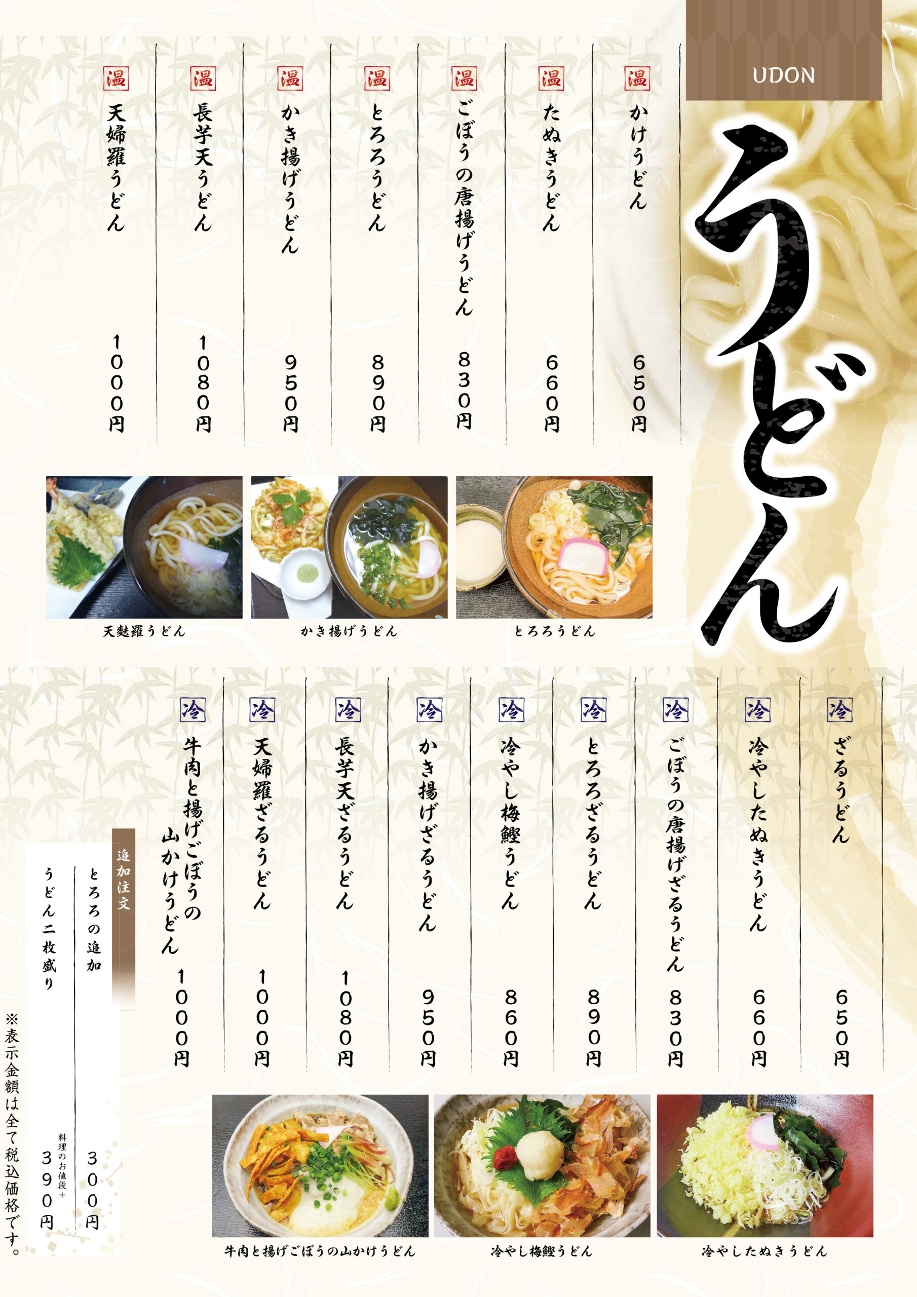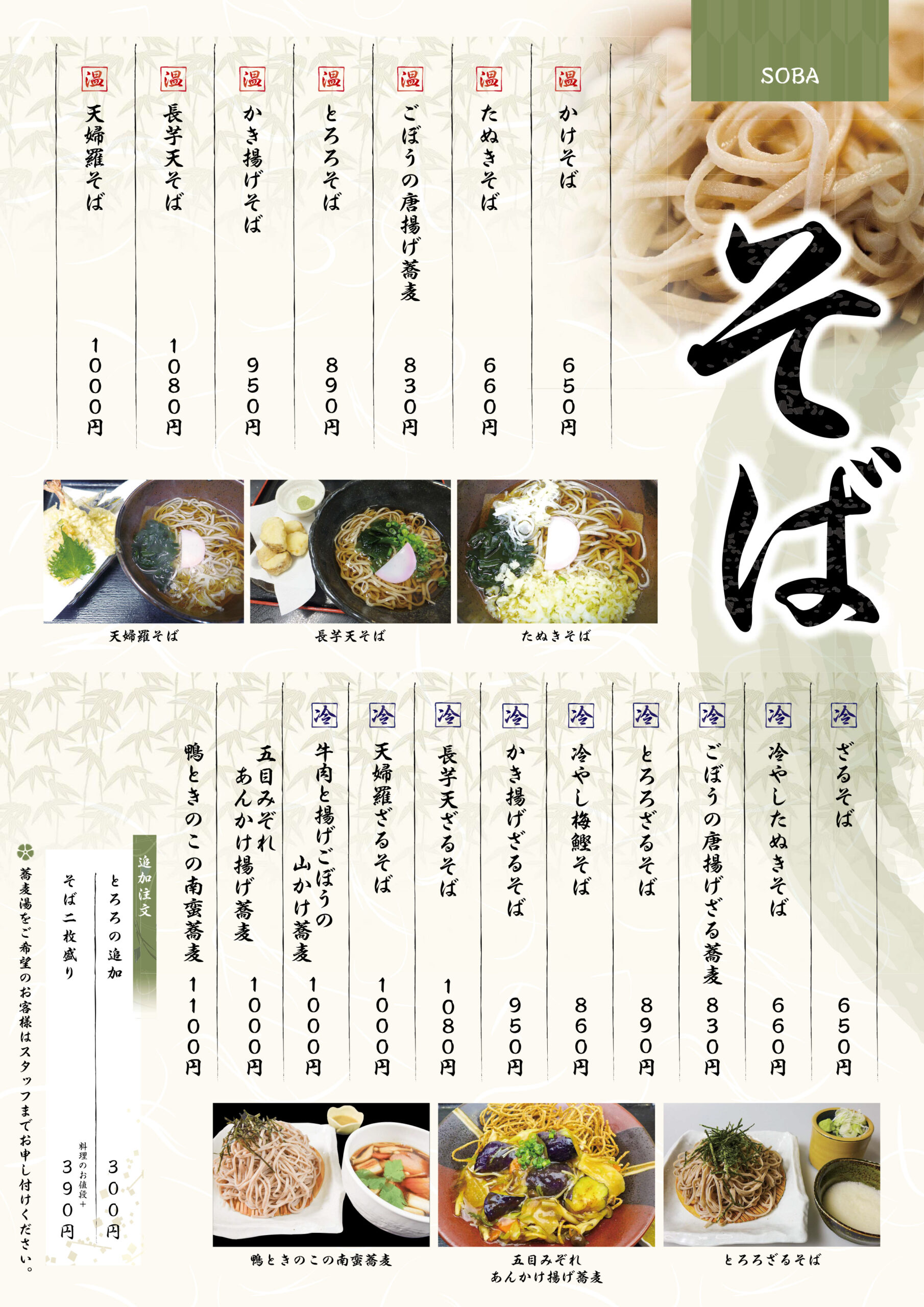 そば・うどんなど定番メニューから、季節感溢れる旬なメニューを取り揃えてお待ちしております。
